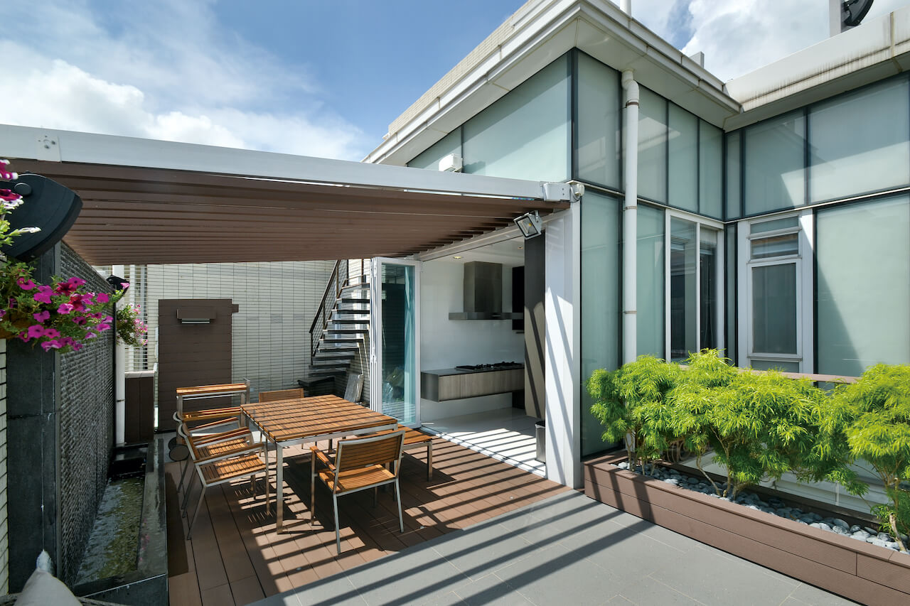 Earth tone has used as the theme of the house to make a great contrast with the decoration. The large glass panel increased the brightness with the view of the whole district.