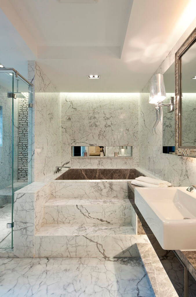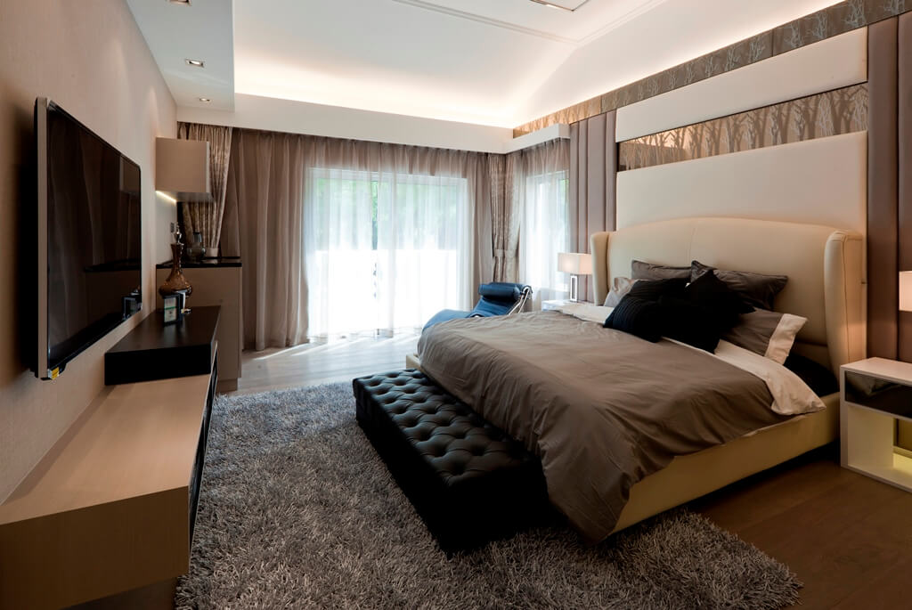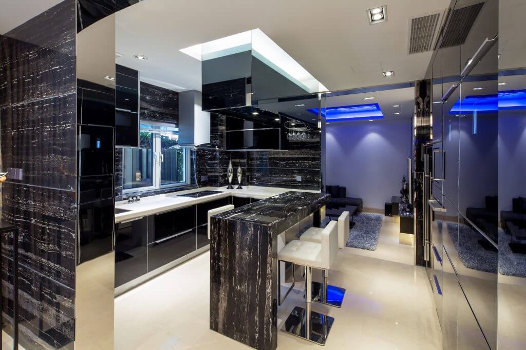 From its exterior appearance, this detached house resembles a European castle, prompting an impression of luxurious European design that continues into the interiors. Classical sculpture fills the house with a magnificent aura and plays with guests’ imaginations. The mansion incorporates continental elements to create exceptionally grand splendour. Vintage curtains sway with the breezes while allowing natural light to filter throughout the house. The ground floor includes a dining area with two square false ceilings clearly distinguishing two areas. The ceiling coves neatly frames two chandeliers with European distinctiveness in the limelight. A fireplace and electric heater are installed within the lounge’s wall. Beyond a pair of mirror and wire glass sliding doors, the dining area is situated. It boasts a design featuring tinted glass and stainless steel designs. The colour distribution from light to dark emits delightful depths of beauty, while modern decor elements add dignity to the simple continental European style.
