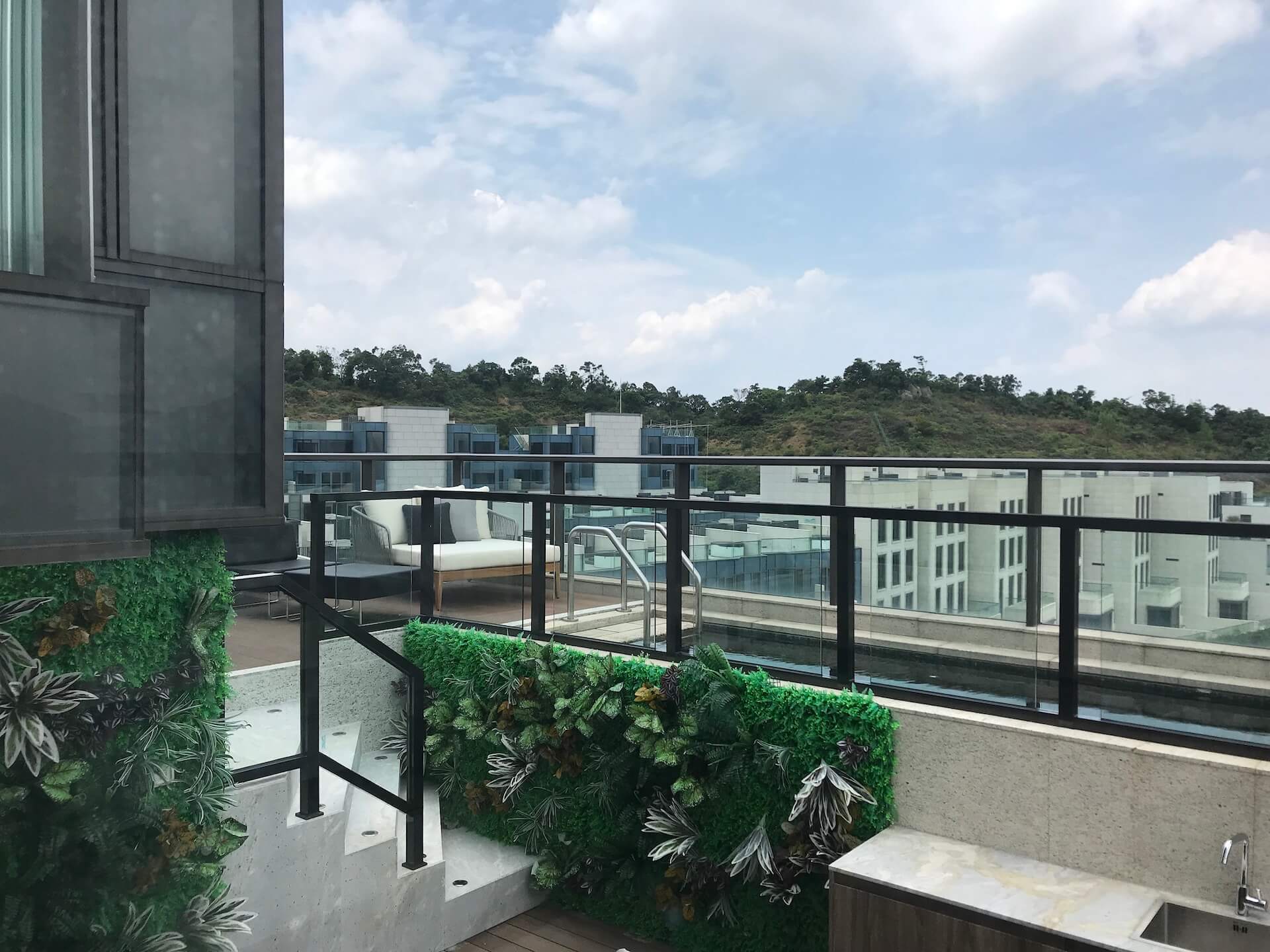 大大的陽台設有小泳池,利用簡易的戶外沙發和桌椅配置,打造出一個充滿自然氣息的多功能休閒空間。