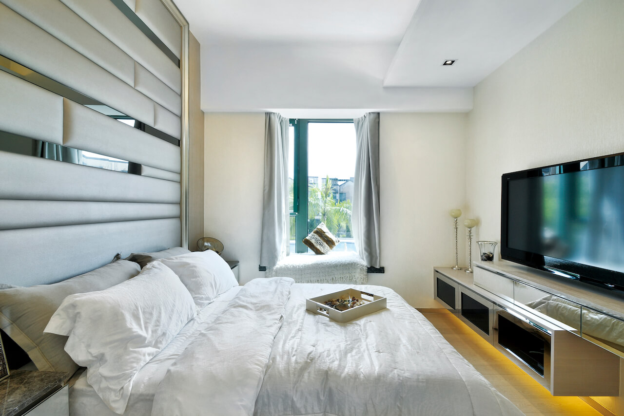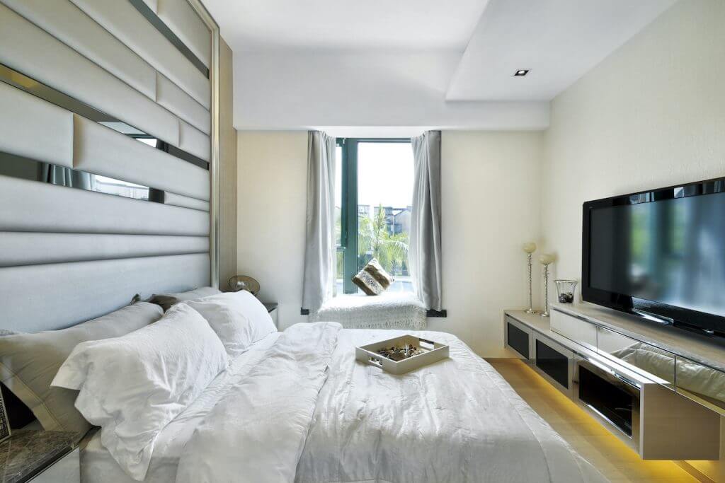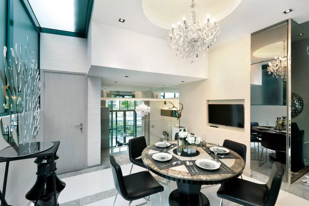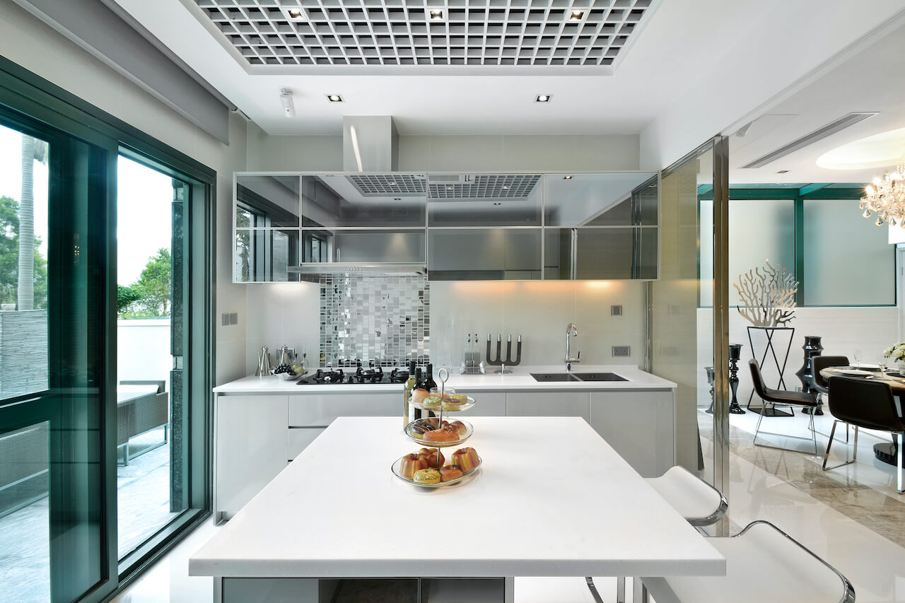 设计师以照顾居者日常需要、充分运用空间和营造时尚华美的格调为本。有见原来的厨房位于两厅之间且对向楼梯,于是将厨房与饭厅位置互换,令玻璃间隔的厨房能对向幽静雅逸的屋苑内貌,以点染悠闲自在的气氛,提升采光度,同时使空间属性与起居编排更见合理。给客人打造宽敞的环境及注入自然气息。